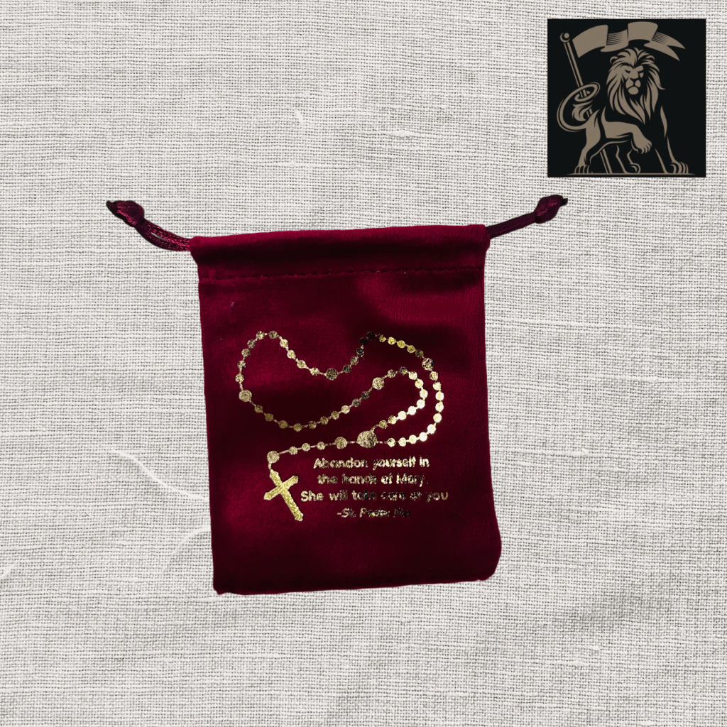 Premium Padre Pio Rosary Pouches with a powerful inscription; “Abandon yourself in the hands of Mary. She will take care of you.”- St. Padre Pio
